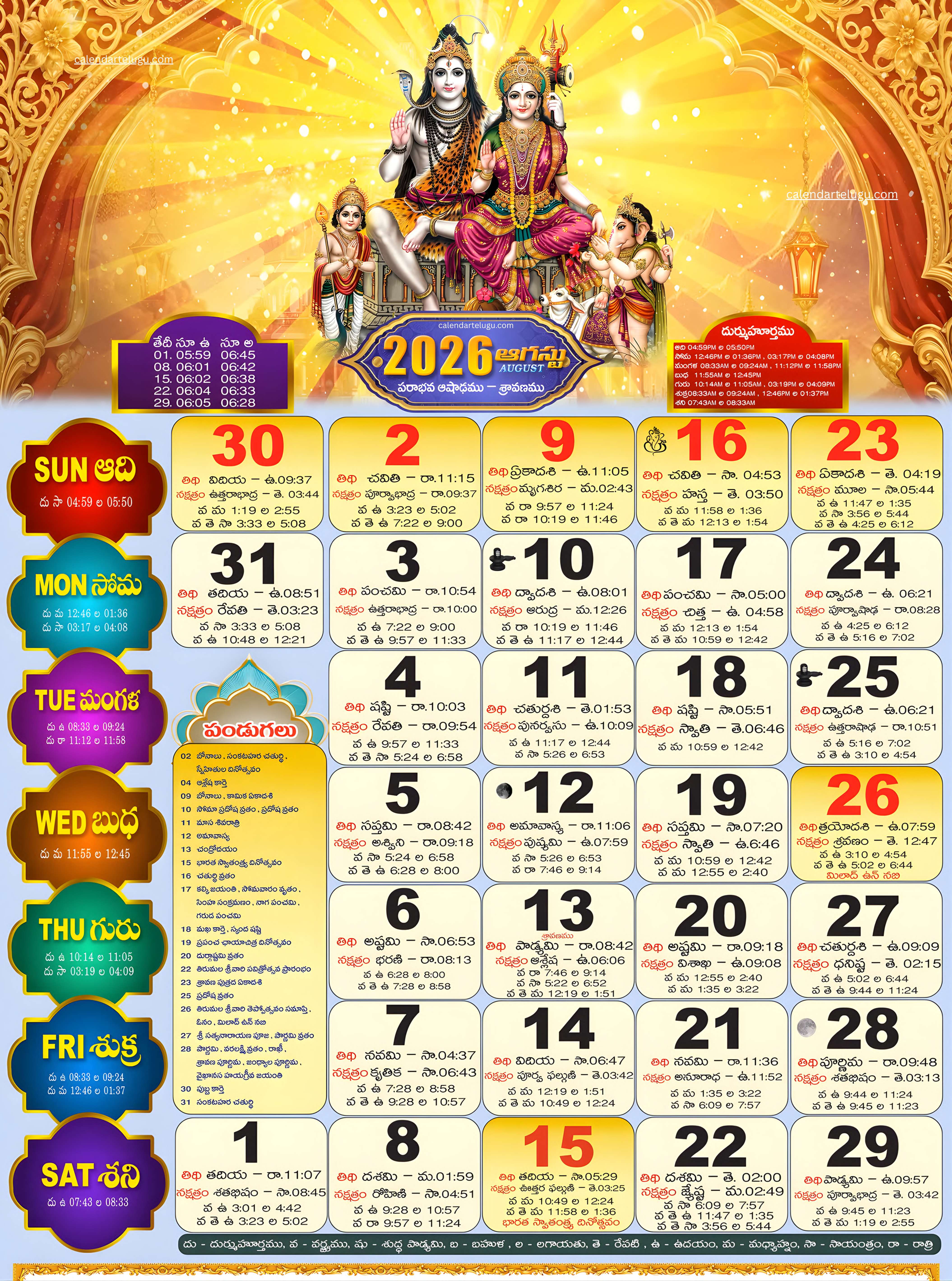 ఆగస్ట్ 2026 తెలుగు క్యాలెండర్