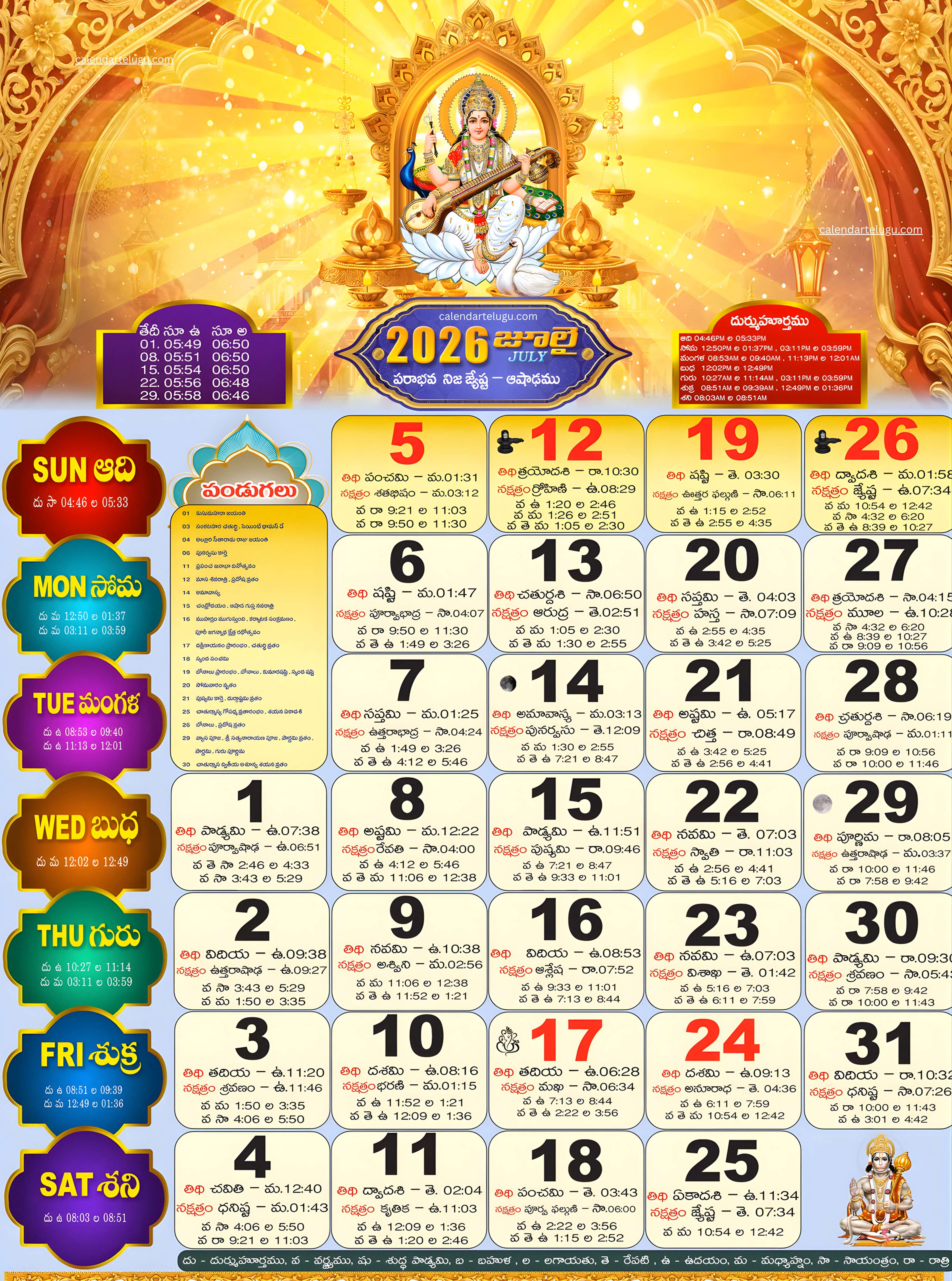 జూలై 2026 తెలుగు క్యాలెండర్