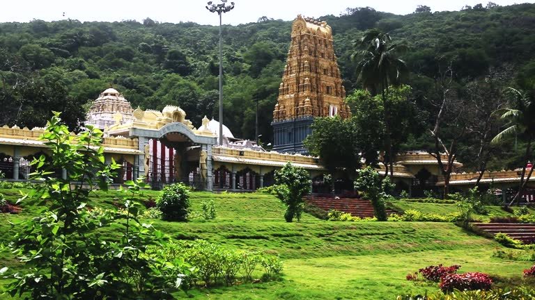 Simhachalam Temple is built in a beautiful blend of Kalinga and Dravidian architectural styles. The temple features intricately carved stone pillars, sculpted walls, and ancient inscriptions that reflect the artistic excellence of medieval South Indian temple construction.